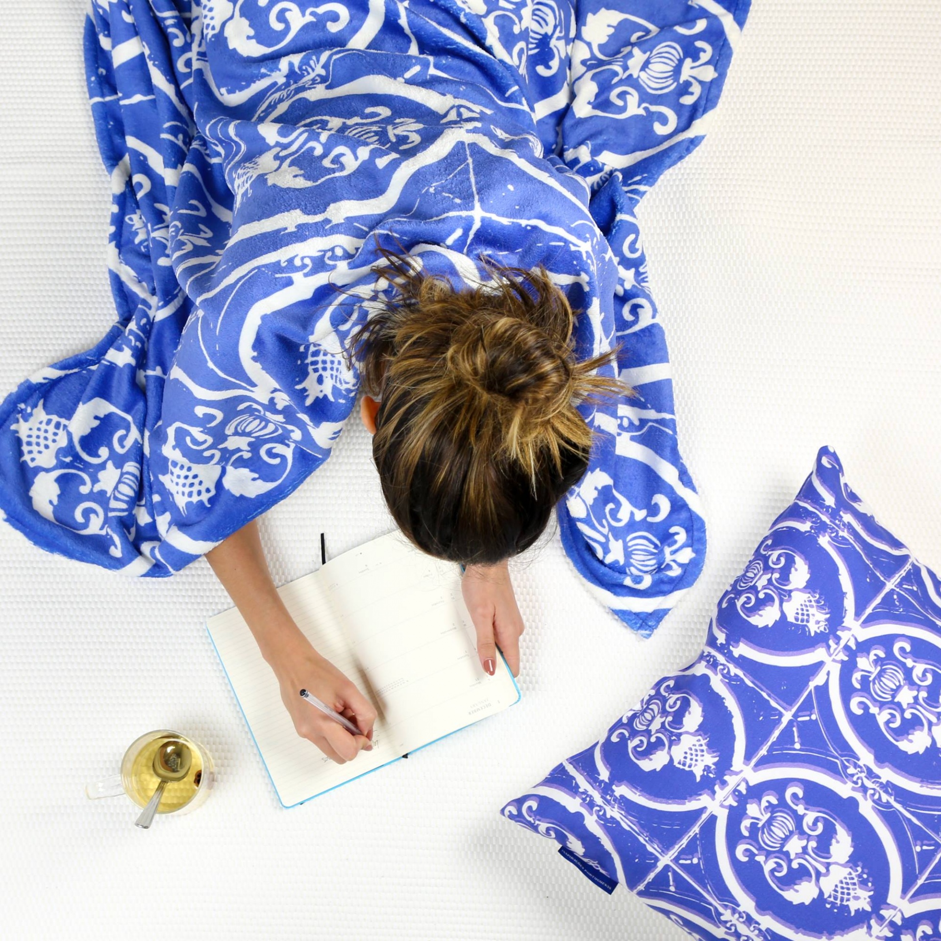 'QUENTES E BOAS' são as nossas mantas inspiradas na azulejaria portuguesa. Impressas num dos lados com a temática dos azulejos, sendo o outro lado branco-liso.
