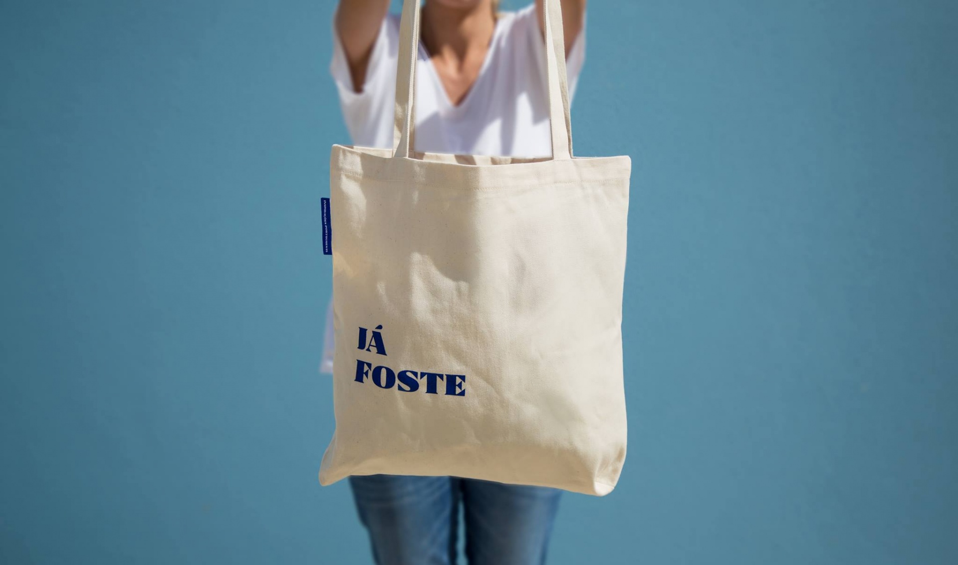 Saco 100% Algodão de cor Bege com alça de ombro. Frente estampada com expressão tipicamente portuguesa e verso estampado com "genuinamente português". Um saco que fala português