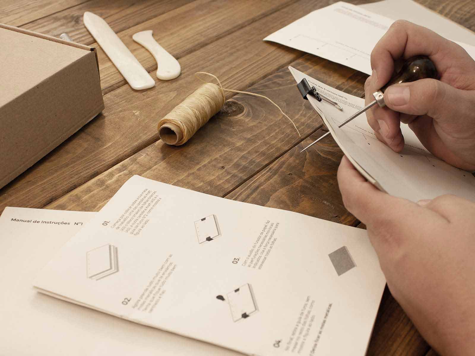 Kit de iniciação à encadernação DIY.